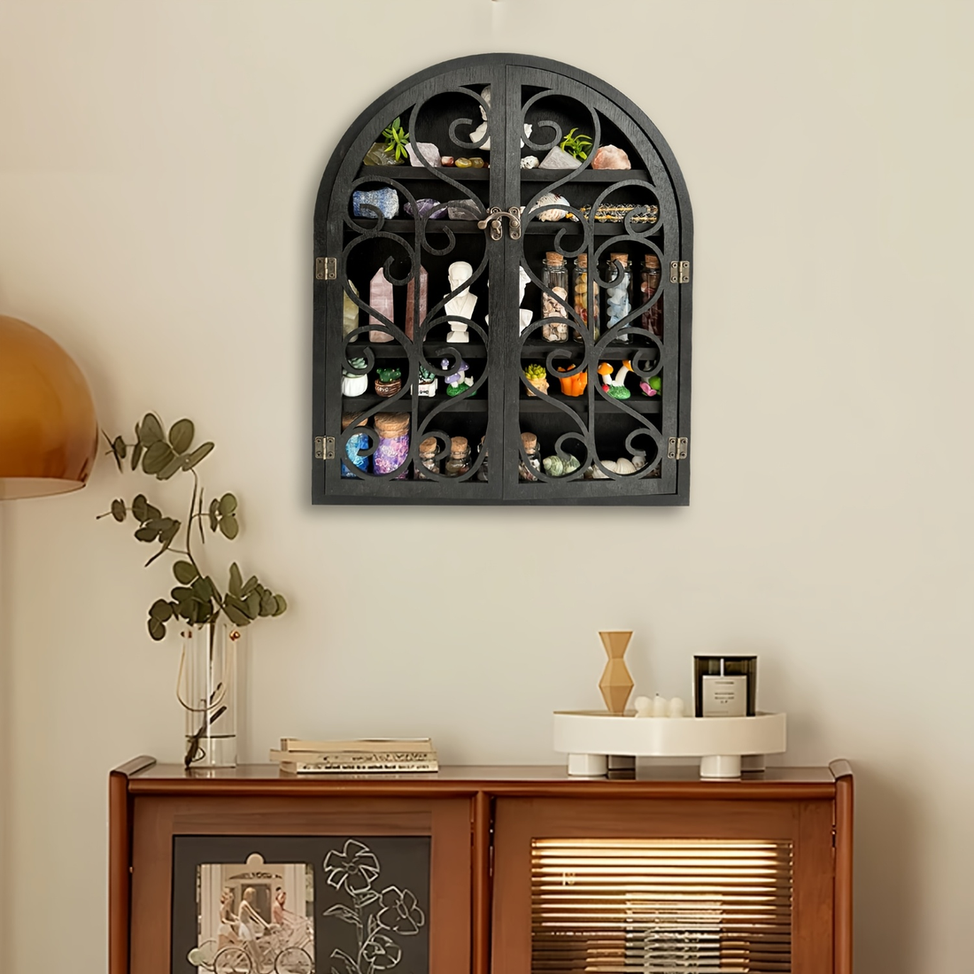 Apothecary Cabinet Floating Shelf, Hardwood Crystal Display Cabinet for Stones, Essential Oils, Nail Polish, Witchy Whimsical Home Decor